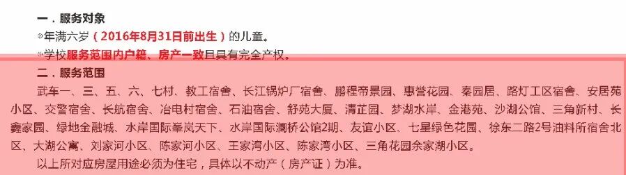 4. 房户一致且一套房产六年只提供一个学位的标准(政策性二孩不受此限)。凡不具备此标准但符合武昌区入学标准的适龄儿童,将由区教育局统筹入学。