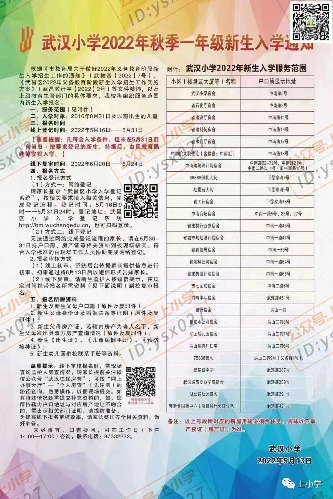 根据武昌区教育局《武昌区2022年义务教育阶段新生入学招生工作实施方案》的通知要求,学校开始2022年新生入学登记工作。现将有关事项公示如下: