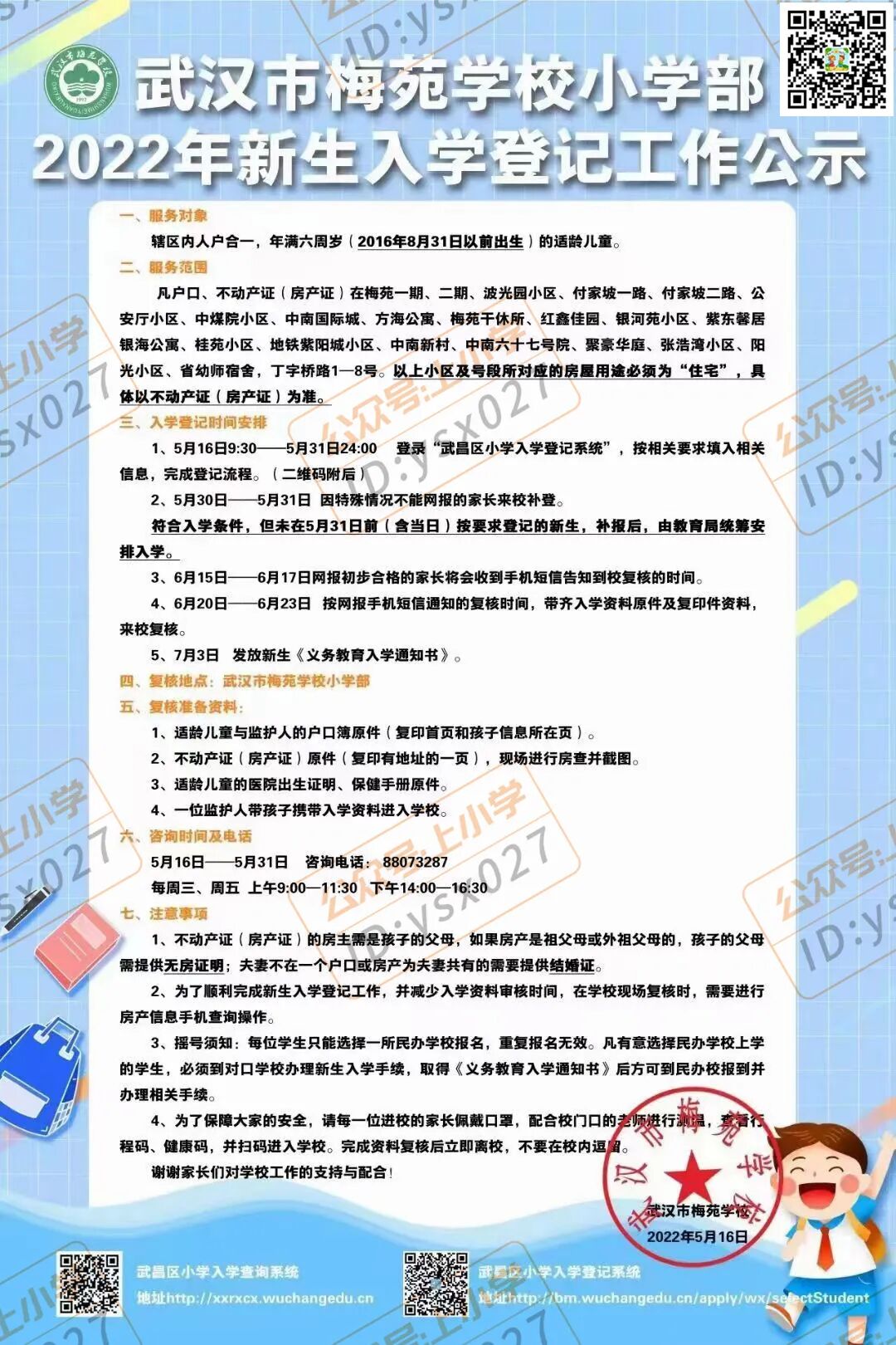 2.6月20至24日在学校门口和微信公众号对小学一年级新生录取名单进行公示。