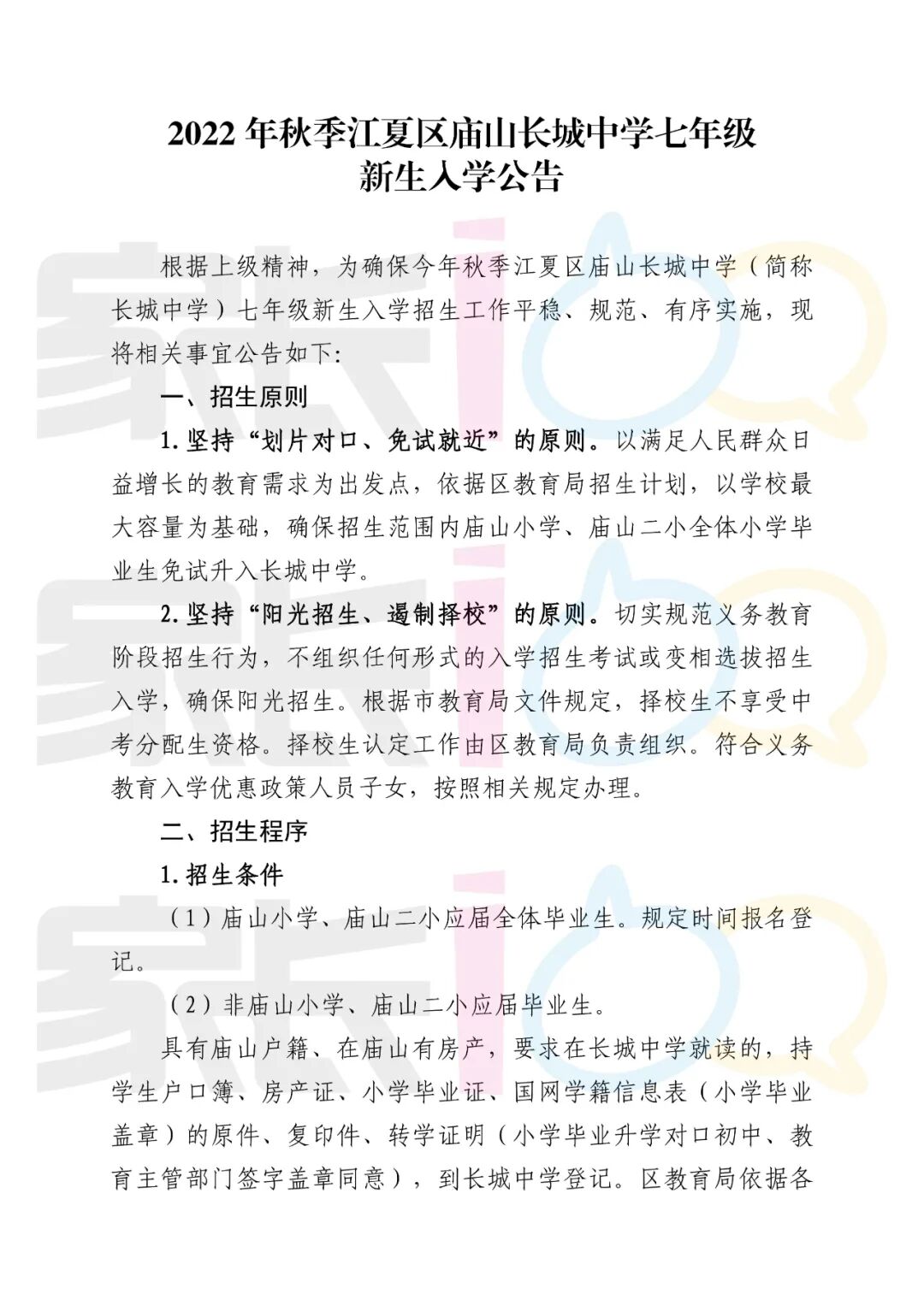 2022年秋季江夏区庙山长城中学七年级新生入学公告:👇 上下滑动查看全部