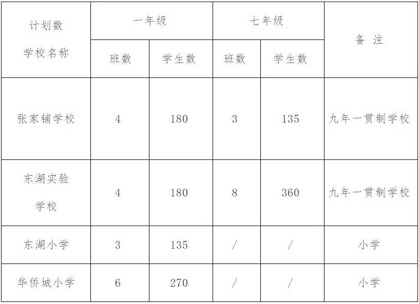1.武汉市张家铺学校点位:负责审核符合就读张家铺学校的新生入学材料。2.武汉市东湖实验学校点位:负责审核符合就读武汉市东湖实验学校的新生入学材料及华侨城小区、东湖景园小区和东湖庭园小区的外来务工人员子女相关入学材料。3.东湖小学点位:负责审核符合就读东湖小学的新生入学材料。4.华侨城小学点位:负责审核符合就读华侨城小学的新生入学材料。小孩所在户口本原件及复印件(含户主、监护人、小孩)、房产证(摇号证或村委会开具的住房证明)原件及复印件、出生证明原件及复印件、疫苗接种手册原件及复印件。小孩所在户口本原件及复印件(含户主、监护人、小孩)、居住证原件及复印件、务工证明原件、出生证明原件及复印件、疫苗接种手册原件及复印件、租房合同(或房产证明材料)原件。1.材料审核时间:6月22日至6月23日,到指定公办学校点位审核材料。2.公布初步录取名单时间:7月1日,学校公布初录名单。3.发放《入学通知书》:7月3日,到相应的公办学校领取入学通知书。4.报到时间:7月5日至7月6日,到相应的公办学校报到。1.本次所划定的服务范围只限于招收的新生,不针对插班生。2.所划定的服务范围内的新生入学必须同时具备下列条件:①有服务范围内的房产证或相关证明材料;②户口属东湖生态旅游风景区,且户口为本服务范围所属的派出所;③年满6周岁(2015年9月1日——2016年8月31日出生)。3.进城务工随迁子女的入学按上级相关文件规定执行,由学生家长或其他监护人在规定时间内,持户口本、居住证、务工证(或经营许可证)、租房合同(或房产证明材料),由区教育局统筹安排,到指定学校(点位)办理入学手续。4.本服务范围的划定只限于2022年度,解释权属武汉市东湖生态旅游风景区教育局。办公电话:88732301。2022年公办学校招生计划:![]()