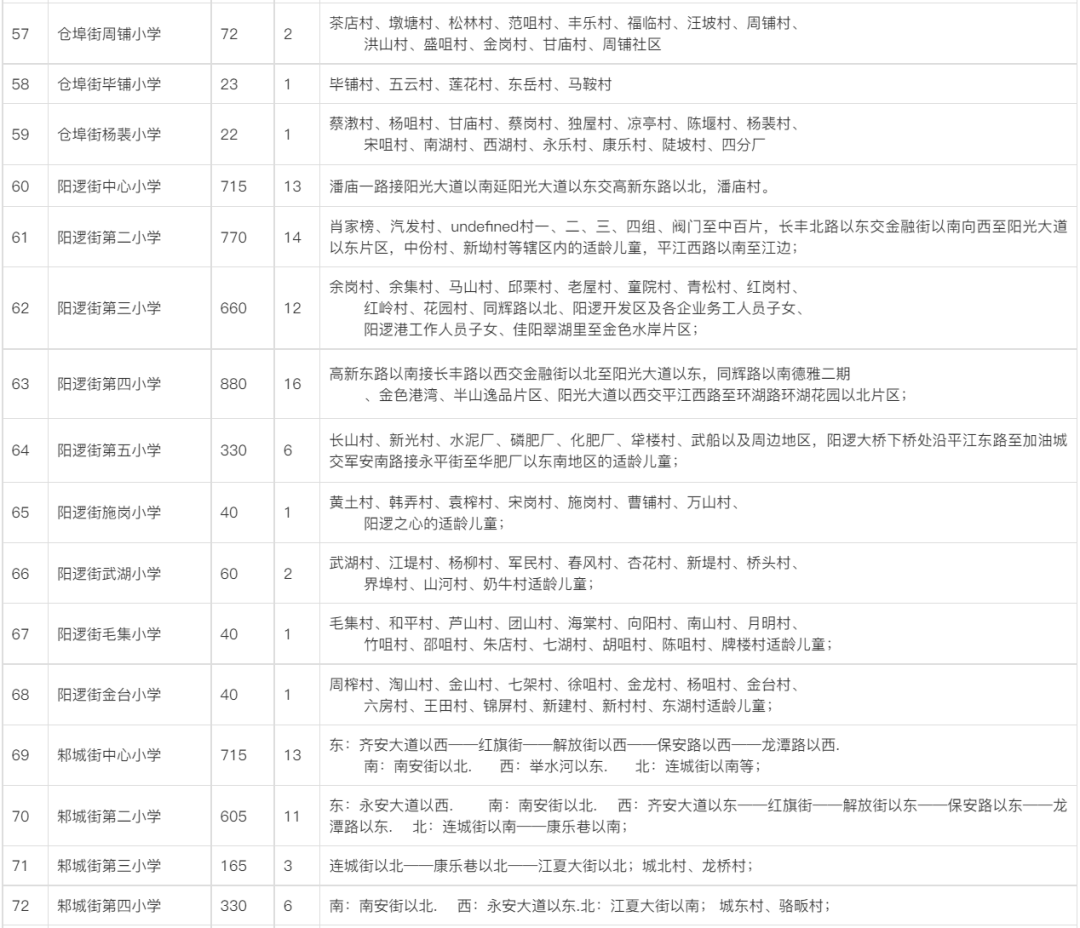 备注:部分小区尚无门牌号码及对口社区,区教育局按照“相对就近”的原则统筹安排适龄儿童入学,确保辖区内适龄少年儿童入学。![]()