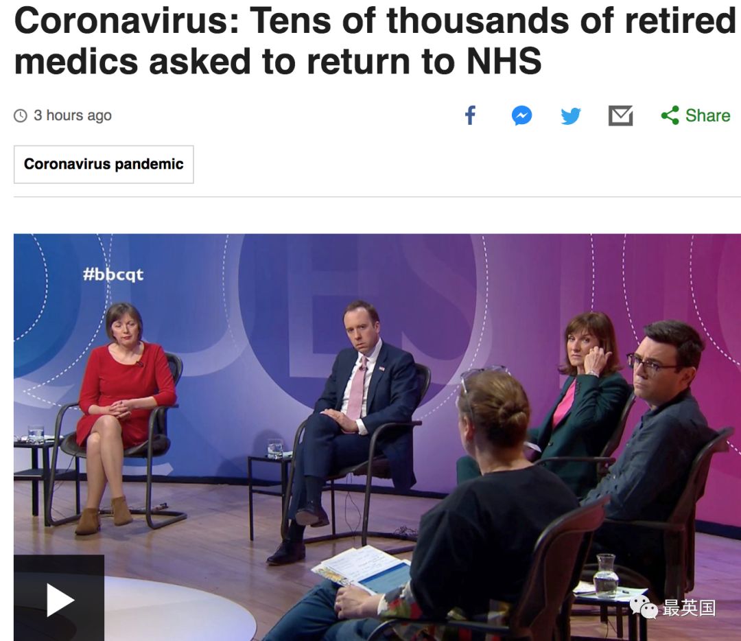 随着疫情的不断扩大,英国有超过65000名已经退休的医生、护士应征重回岗位,为抗击疫情共同作战。