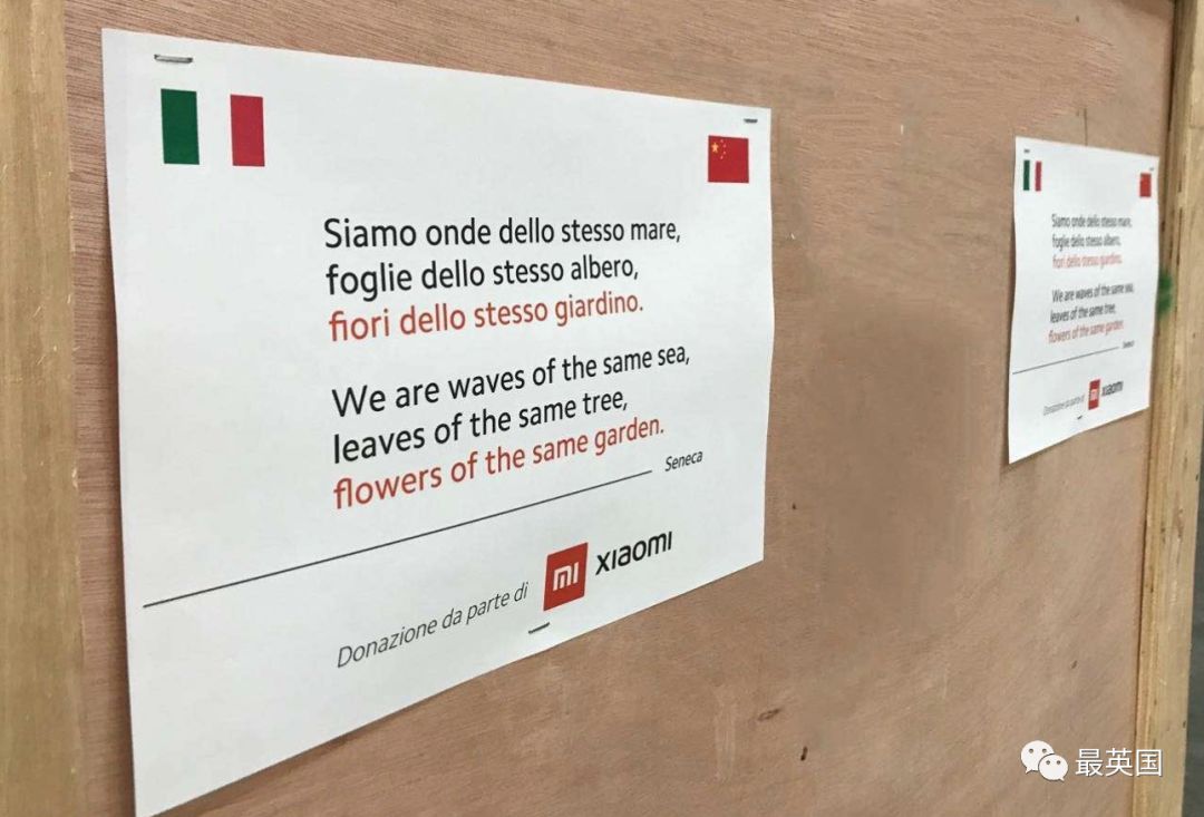 也正像中国向意大利捐赠口罩的包装上写一样: