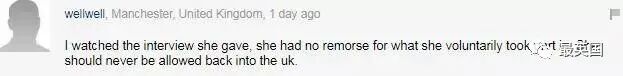 “我看了她之前的采访,她对自愿加入ISIS完全没有任何悔改之意。这样的人应该永远不被允许回到英国。”