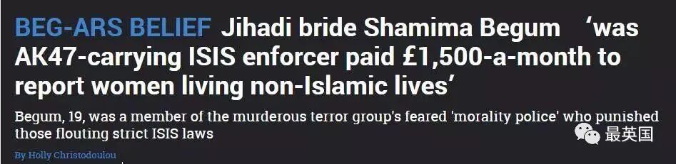 因为情报机构向英国媒体透露,贝古姆不是如她自己所说的那样“是一个平民”:她是带着AK47扫街的ISIS “执法人员” 。
