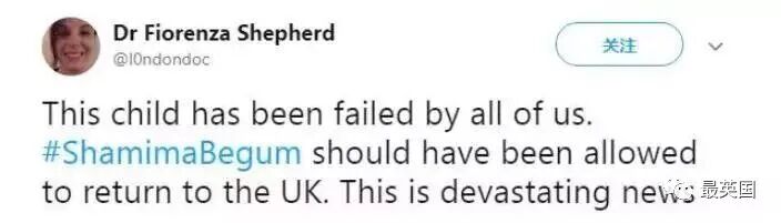 “这消息太令人绝望了,我们所有人都辜负了这个孩子。应该允许贝居姆返回英国。”