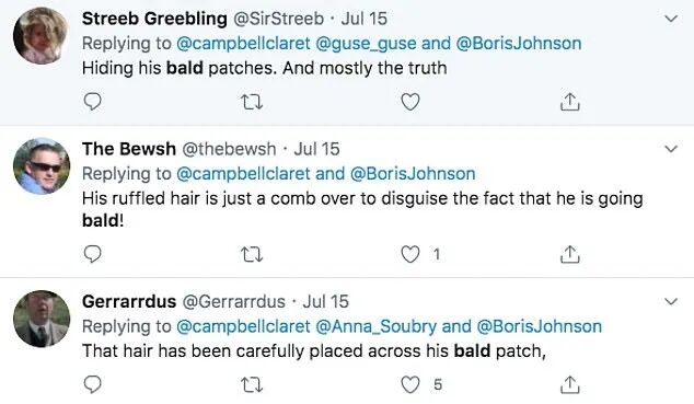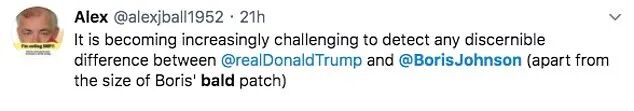 “鲍里斯太秃了,严重怀疑他的发型设计是跟Tony·川学的,毕竟是白宫几十年来最秃的男纸。”