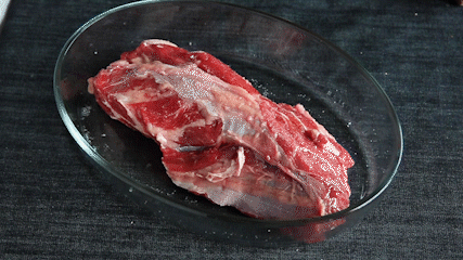 真的只有冷冻牛肉怎么办?提前两天放进冷藏,自然解冻后泡凉水半天。不要忽略下面的腌制步骤,能让冷冻牛肉焕发第二春;)