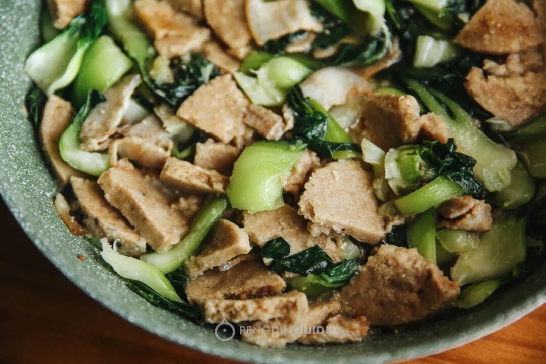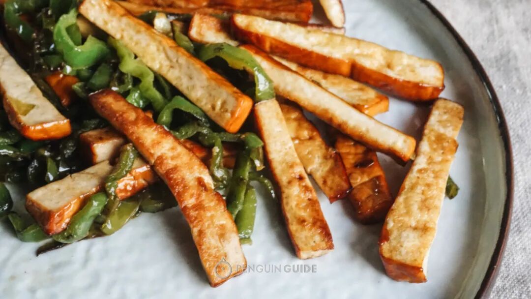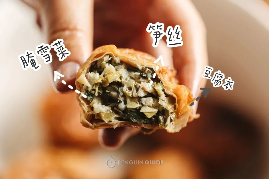 在湖北有道“主食”,叫豆丝。口感像面条,但有种特别的嚼劲和豆香——其实是绿豆大米磨成的浆——烙成的饼——切成的条条。网购有干的豆丝,也有鲜做的,商家甚至连调料都给你配好了:更为地道的吃法,是炒豆丝——也是最能突出豆丝质地优势的做法:它比普通的面条,更能吸收其他食材的香气,也更擅长与油彼此结合、渗透,绽放出锅气的焦香:这块抹过盐、在太阳下烤晒成的豆腐干,质感简直像一枚经过熟成的芝士:切片可直接做冷盘,咀嚼的后段有着丰厚的咸鲜,非常适合下酒:云贵川一带的腊肠有多香,是有目共睹的。而在云南普洱,豆腐经常跟猪肉、花椒、辣椒一起灌进香肠:相比普通腊肠,减少了猪肉的腥腻,口感更绵密扎实,而且多了丝豆腐发酵产生的酸意,结合微许辣度,非常停不下来......当地还有一种豆腐圆子,不是糯米制品,是豆腐+猪肉+香料的低碳水腊味,在湖南贵州也很常见,卖相朴实得有点可爱:同样的,切片煎一煎,没有任何难度,味道跟豆腐腊肠类似,但口感更软更嫩,香香:源头是和尚们开发出来解馋的,但吃起来甚至比肉更有趣。各地叫法有区别,但本质指向同一种东西——油煎卤汁腐皮卷:制作工艺就挺有趣:用最薄的那种豆腐衣,抹上调好的酱汁,卷啊卷起来,下锅油煎,放凉——少了许多豆涩味,多了卤汁酱香,层叠的卷制带来嚼劲。喜欢口感嫩的,推荐杭州知味观;口感偏韧的,推荐南京李记清真馆,调味也很优秀,咸甜平衡,甜中还带出一丝酒香,不是连锁卤味那种千篇一律的齁咸。广州有家开在小巷里的斋烧鹅:菜根香嫡系斋卤味,是广州最早的素食餐厅菜根香的弟子传承下来的,可惜找不到代购