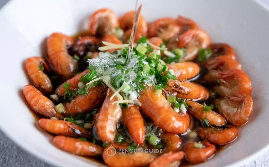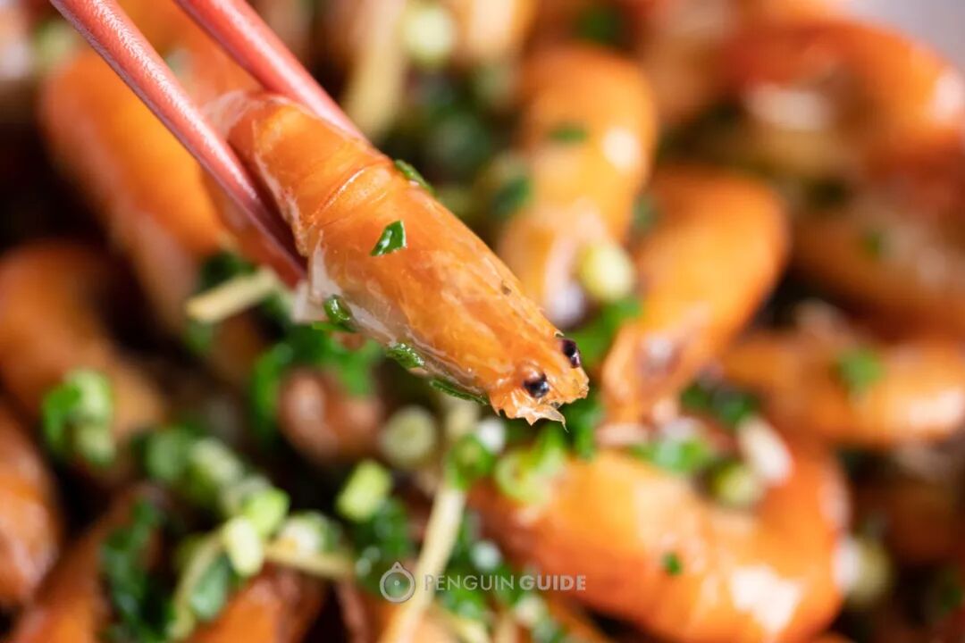 记得用雄虾来炸,虾壳酥松,咬下去会发出脆薄声响。料汁熬得鲜咸带微甜,还有热油激出的葱姜香!