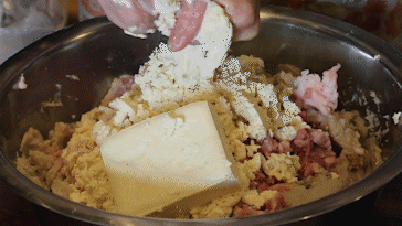 大街小巷都能见到,薯粉加水搅匀,然后拌鲜肉、豆腐、煮熟的芋头和酱油: