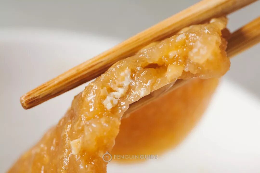 皮煎得薄脆,形成了一层焦化的壳。吃一口,满是脆、糯和浓郁饱满的肉香。