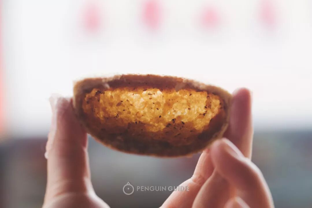 做法也很有趣,醒好的面里包糖馅擀平,表面均匀的粘上芝麻上炉烘烤,然后温度开始施展魔法,生面自然膨起,上下饼皮脱离,形成空心。