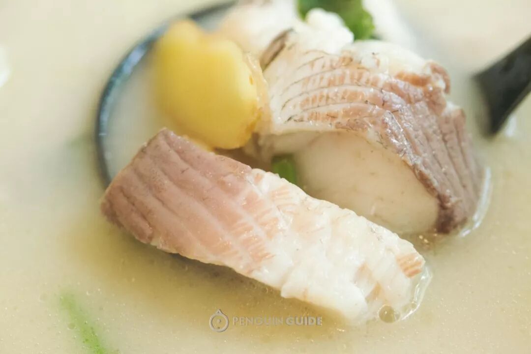 雪白的鱼肉细腻如蒜瓣,泉水烧成的鱼汤鲜味绵长。