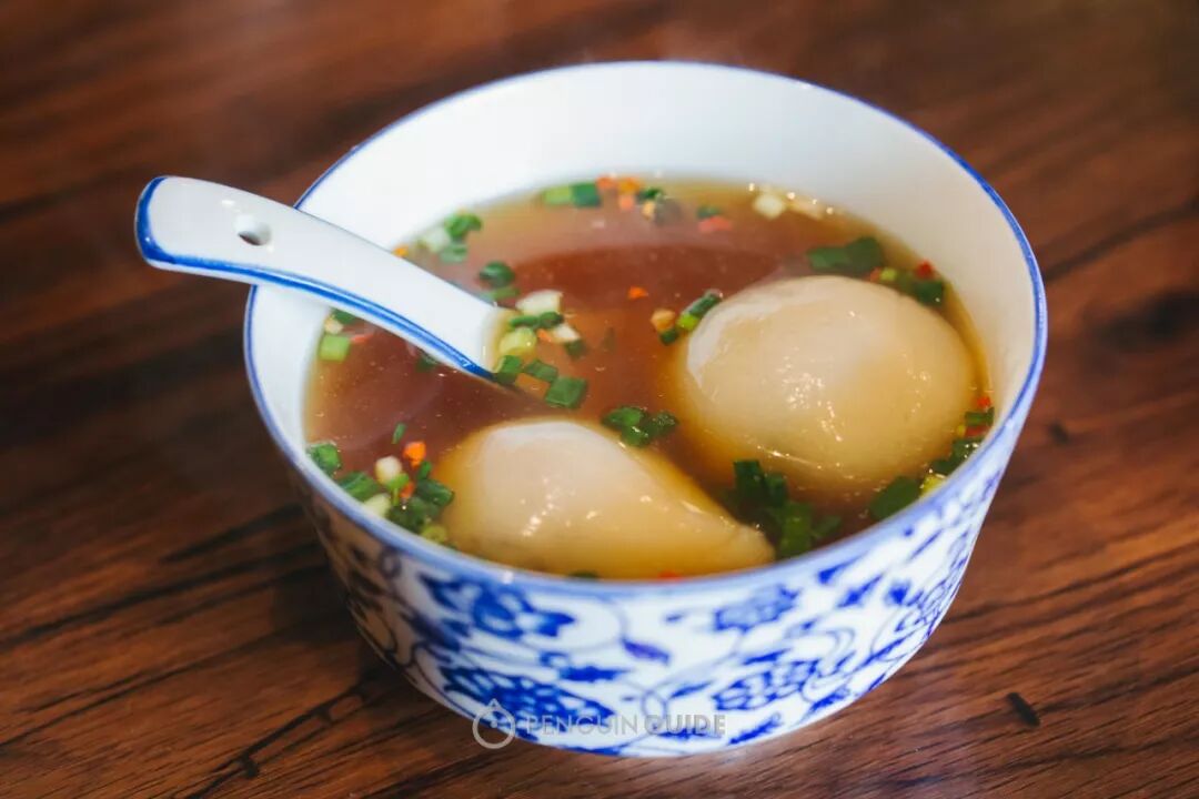 正宗的汤团要用「七日粉」做,就是将糯米浸泡七天然后晒干磨粉,这样和出来的面才能薄而不破,软韧适中。