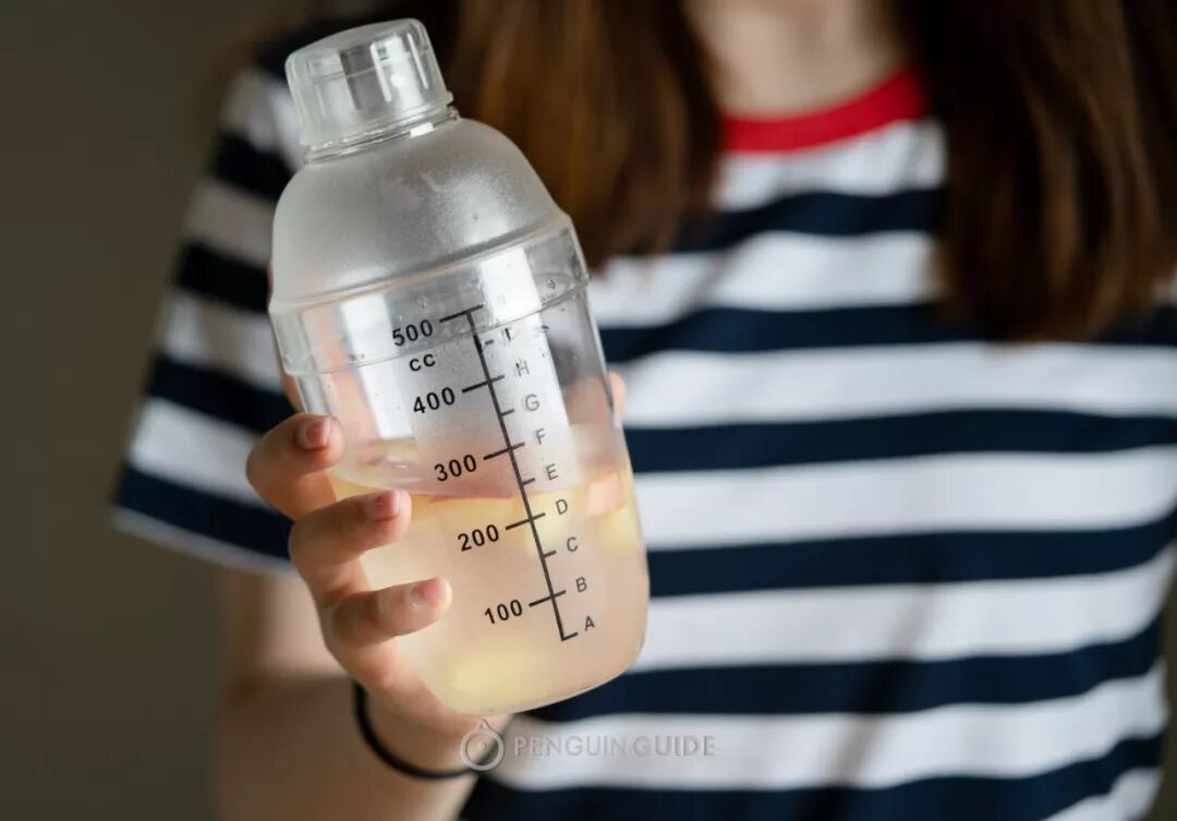 盖上顶部小帽以后整体是密封状态,怎么摇都不会洒出来,轻轻松松就能把各种原料摇匀,有刻度,还自带滤头,价格也不贵,家里备一个,利用率很高。