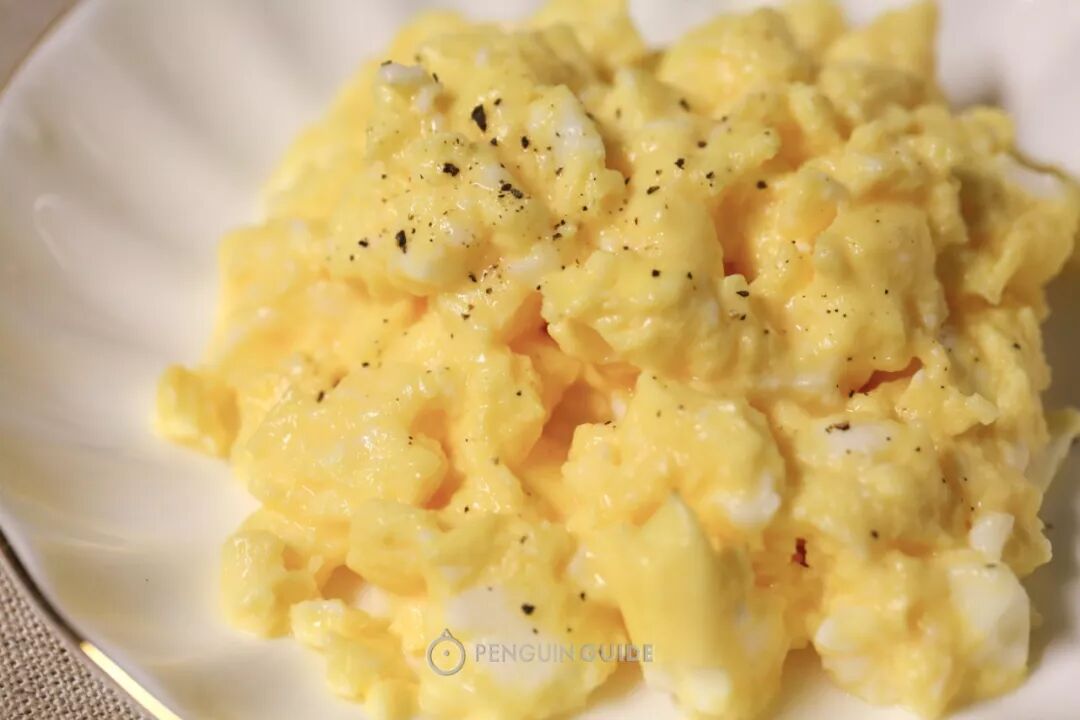 再出炉的时候,就是一碗金光闪闪、柔滑绵密的美式炒蛋了。