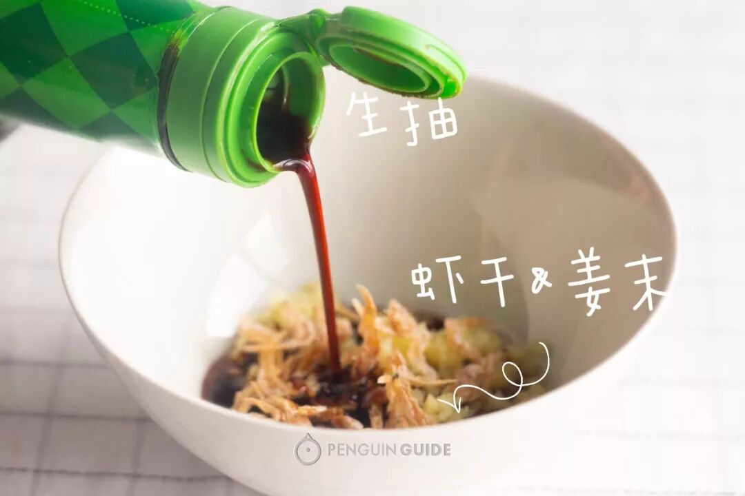 准备好半斤猪肉馅,接下来就是往里面加料: