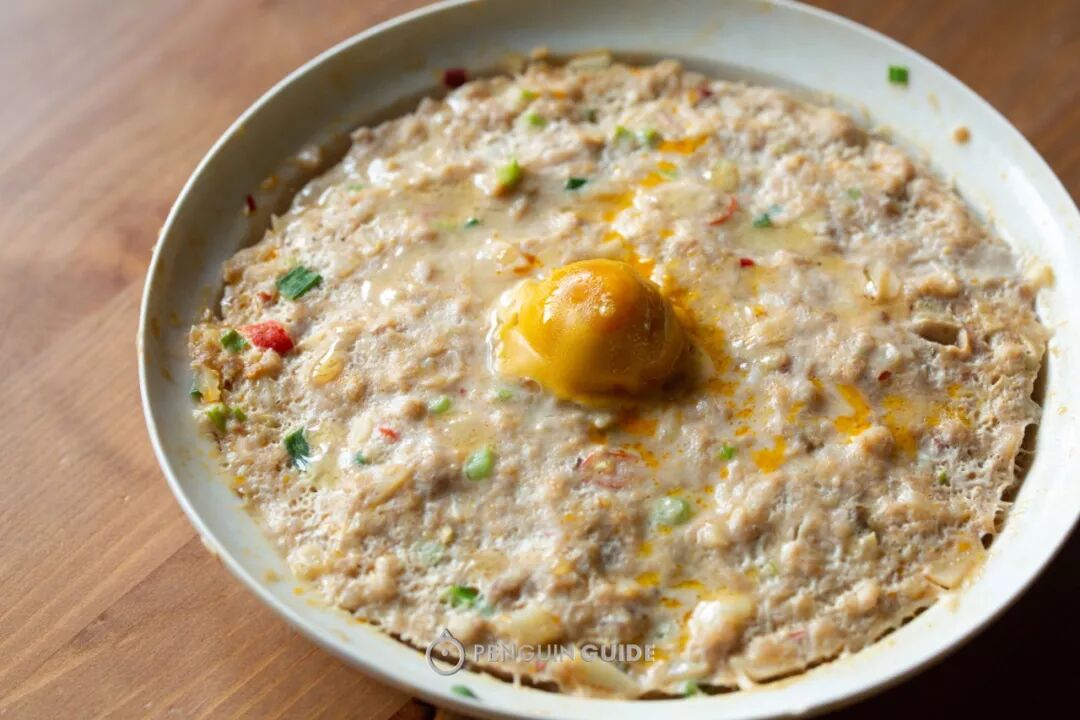 这道菜基础是大家都很熟悉的广式咸蛋肉饼。