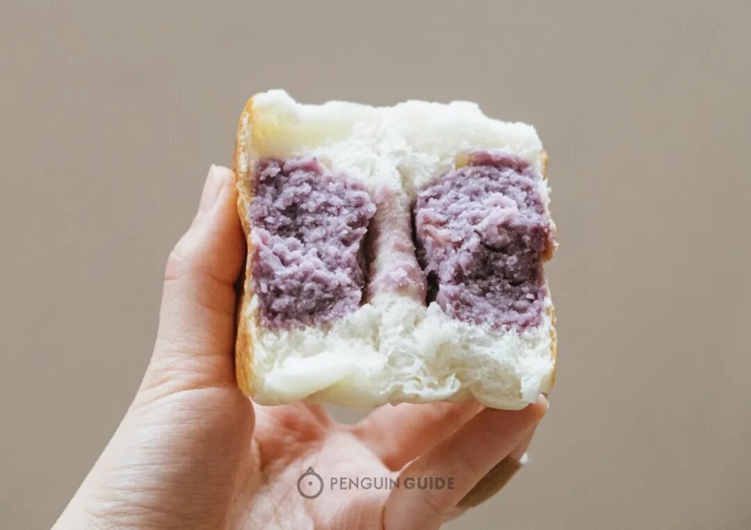 像芋头大鼓(¥12),馅料从颜色到味道都是紫薯味儿的,与芋头毫无瓜葛,就连面包本身的糖度也很高,吃半个就嘴里甜得发腻。