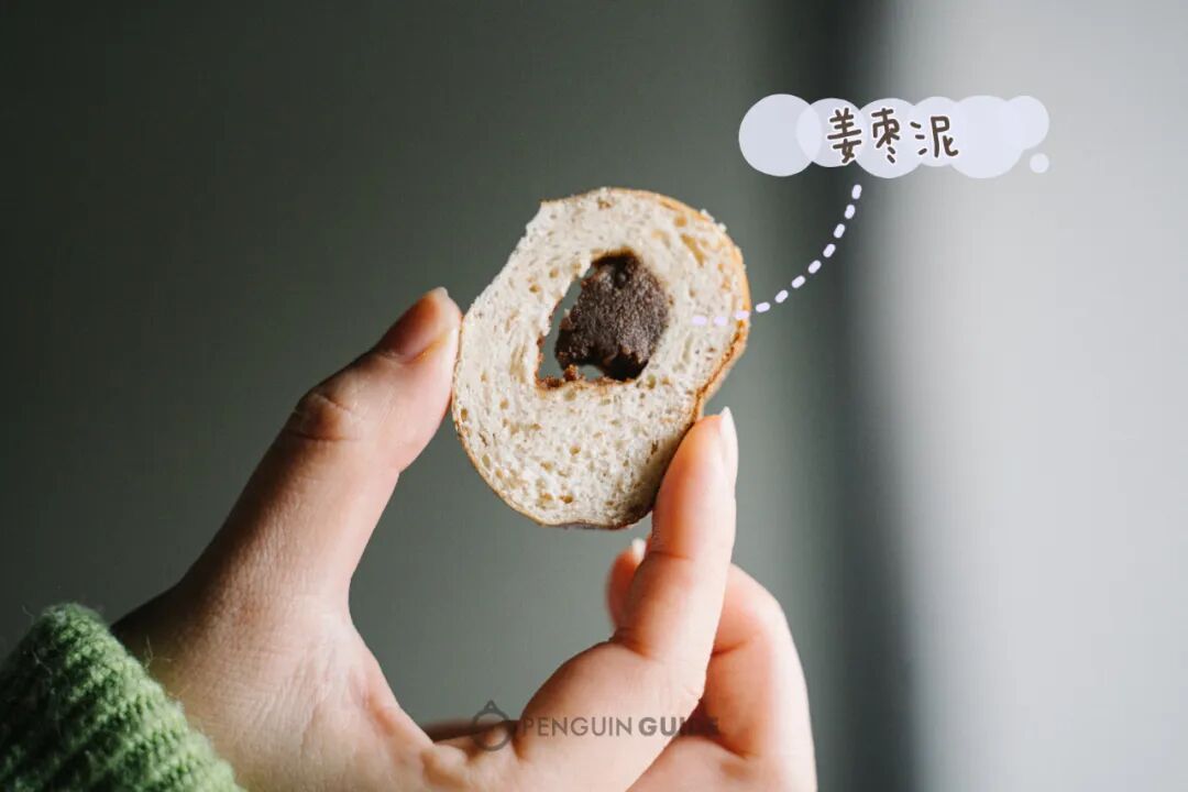 内馅的年糕已经变得软糯,甜度不高,外层则是标准的碱水组织,结实有嚼劲。