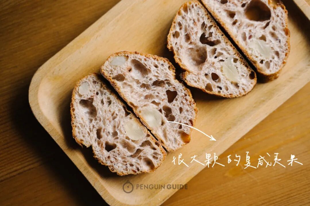 大而不规则的孔洞,则显示出发酵的到位,皮脆芯软,很好吃。