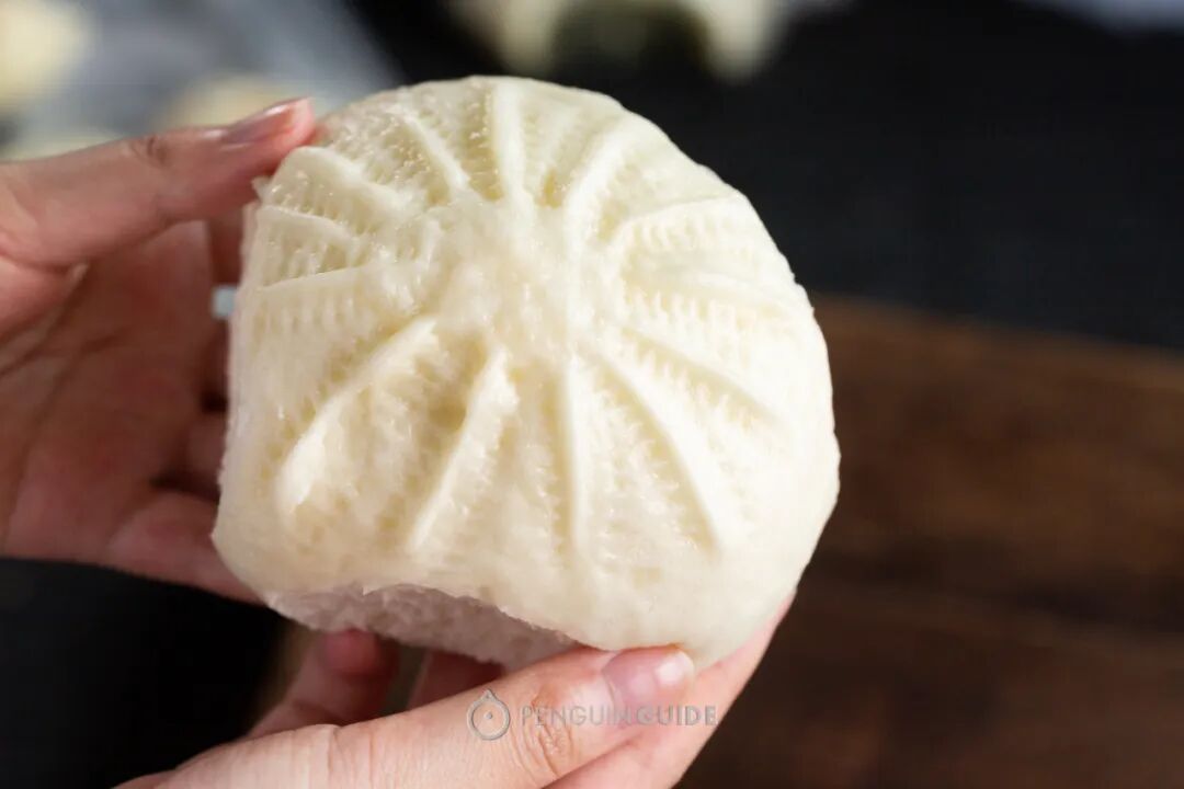 老上海大包的个头也着实不小,而且这个豆沙包的印压花纹也好有古早感!