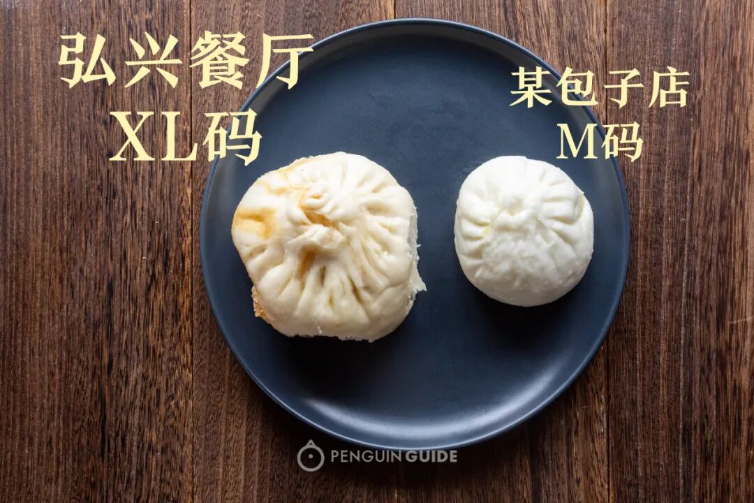 弘兴餐厅的大包有多大呢?其他店的包子往弘兴大包前一摆,都立马变得娟秀可人: