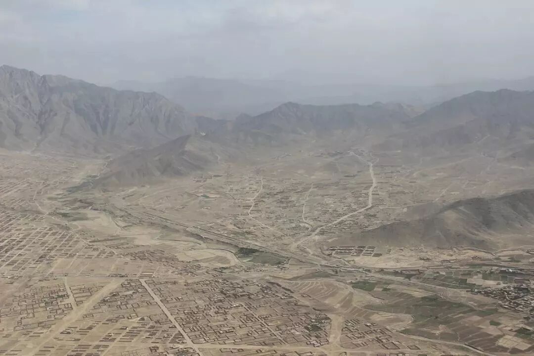 ▲ 喀布尔坐落在山间的一个小盆地之中,一片土黄色,没什么植被。图为从飞机上看到的喀布尔城郊。 © 郭建龙