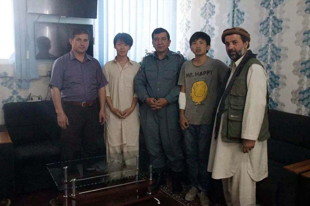 ▲ 拿回失物后,和喀布尔警察合影。从左开始:Amiri探长(侦查工作主要由他主持)、中国伙伴倪瑞迪、警察局长、我、事发当地的部落长老(他将我的背包拿回)。 © 郭建龙