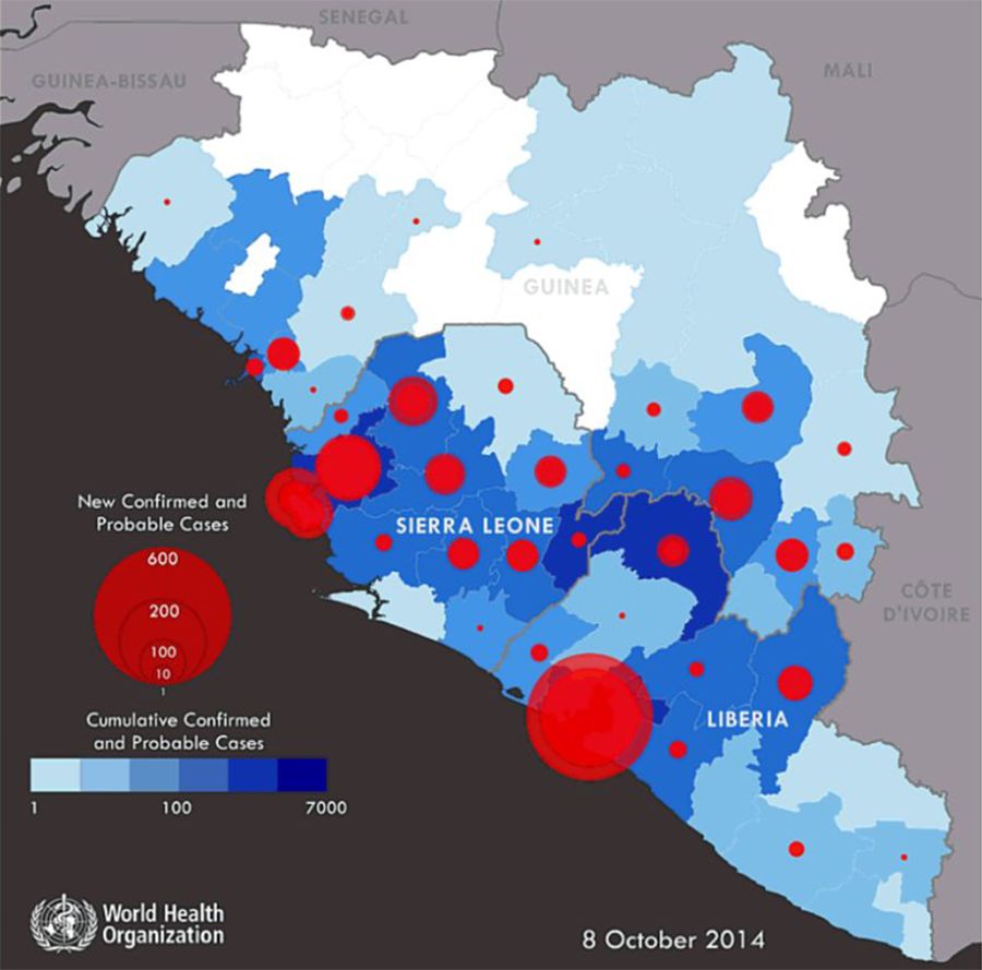 2014年,埃博拉疫情在非洲爆发。这是1976年首次发现埃博拉病毒以来发生的最大且最复杂埃博拉疫情。这场持续近两年的埃博拉疫情主要影响了几内亚、利比里亚和塞拉利昂三个西非国家,共导致超过2.8万人感染,1.1万人失去生命。