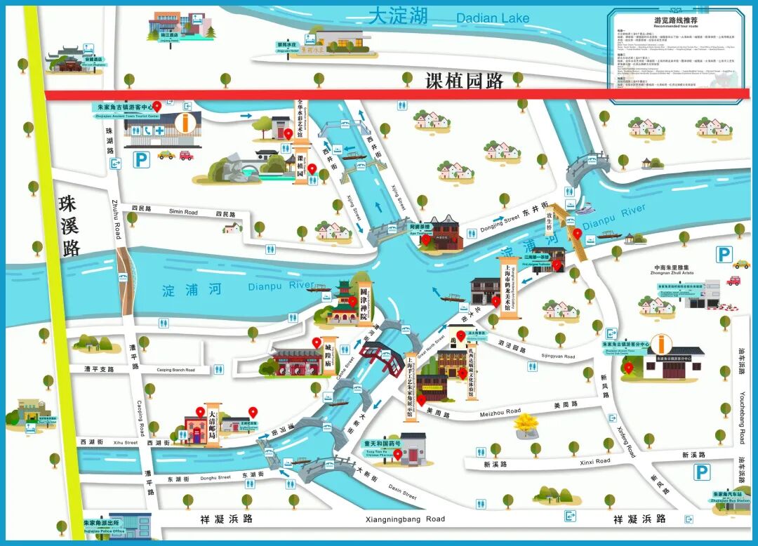 课植园路因朱家角古镇上的课植园而命名。课植园是上世纪初当地巨贾马文卿的私宅,曾经是江南最大的庄园式私家园林。“课植”二字寓意“一边课读,一边耕植”,反映了中国百姓耕读传家的传统心愿。如今,课植园路也成为了古镇优美路域环境的典型代表,承载着深厚的历史与人文。