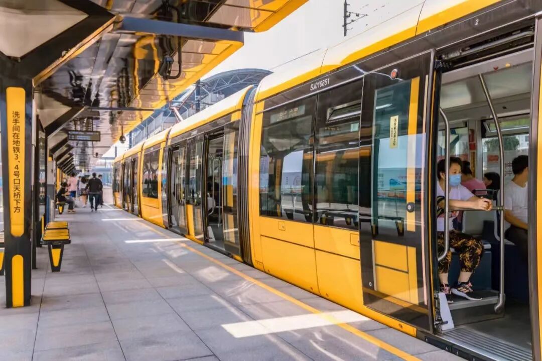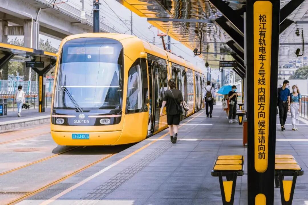 松江有轨电车T2号线于2018年通车,全长24.95公里,共设36座车站,全部为地面车站,列车采用5节编组列车。