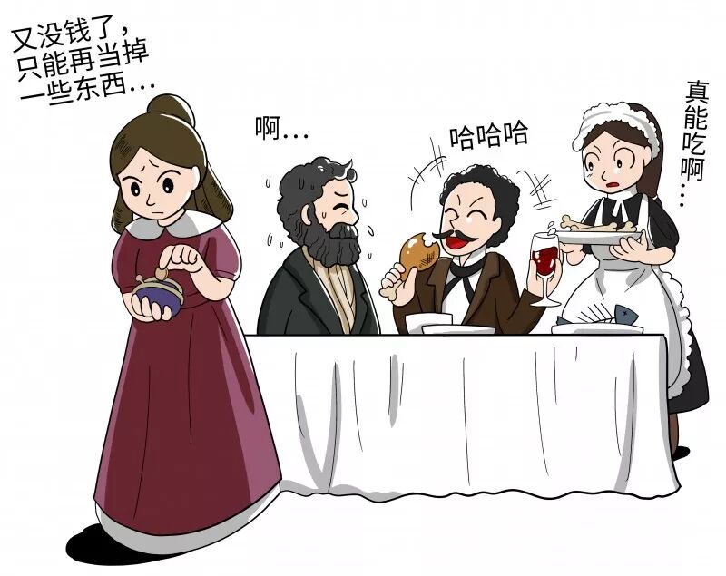 就在这年七月,就在马克思最困顿的时候,他的朋友,叫拉萨尔,来伦敦马克思的家中做客,一住就是好几个星期。当时房东因为马克思欠下了很多房租,勒令其迁居并扣押了家具和杂物。贵族出身的燕妮为了不让拉萨尔看出家中的窘境,把所有能当掉的东西通通送进了当铺,布置了一些“表面上的排场”招待拉萨尔。拉萨尔对此毫不知情,在马克思家里大吃大喝,以至于琳蘅被这位客人的好胃口惊呆了,场面一度非常尴尬。