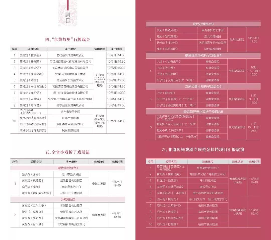 此次展演邀请了省内外70余家演出单位参演,1000余场演出,其中大戏47台(94场),小戏折子戏9台(12场),儿童剧2台(14场),赴贫困县巡演1018场。荟萃戏曲、音乐、歌舞、歌剧、音乐剧、曲艺等优秀剧目,既有新创的现代戏,也有经典的传统戏;既有获国家大奖的剧目,也有乡土气息浓郁的小戏折子戏。