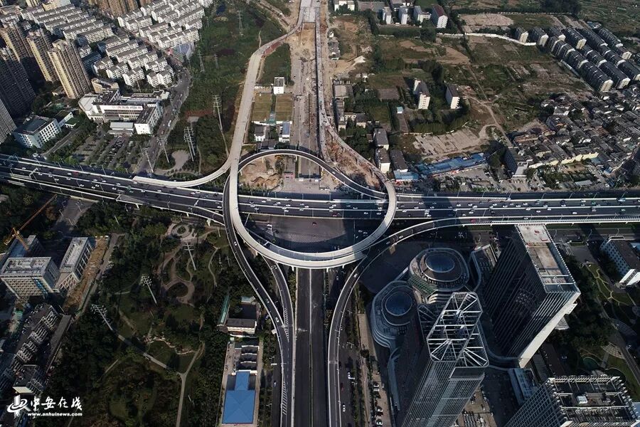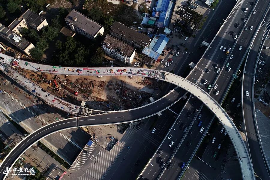 四通八达的大型立交桥将缓解合肥城区东西方向的交通压力。