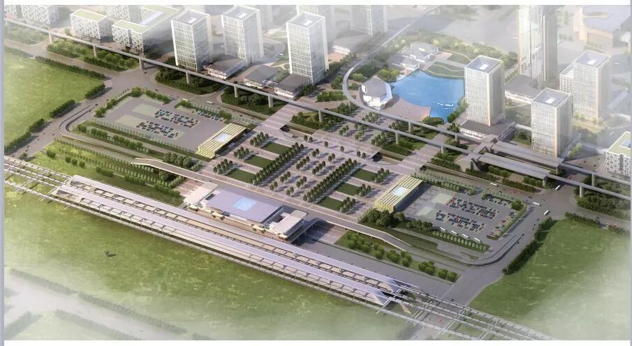 站前片区交通设施主要有高铁站、轻轨站、长途客运站、公交枢纽站、出租车停车场、社会车停车场、小件物流、旅游集散中心