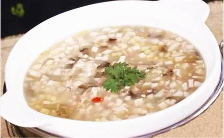 即鱼头炖豆腐,是冬天必不可少的一道主菜。尤其在寒冷的时节,砂锅里放精选的鱼头,六月黄老豆腐,慢火炖制而成,锅盖掀开时,热气和香味齐飞,味道鲜美。