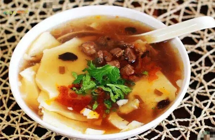 将一只生鸡蛋打入碗中,再用滚烫的沙汤冲入其中,随后撒上胡椒面、香油等,一碗热呼呼、香喷喷的沙汤就做好了。记得要用滚烫的沙汤,要不就冲不开鸡蛋,不好看也不好吃了。