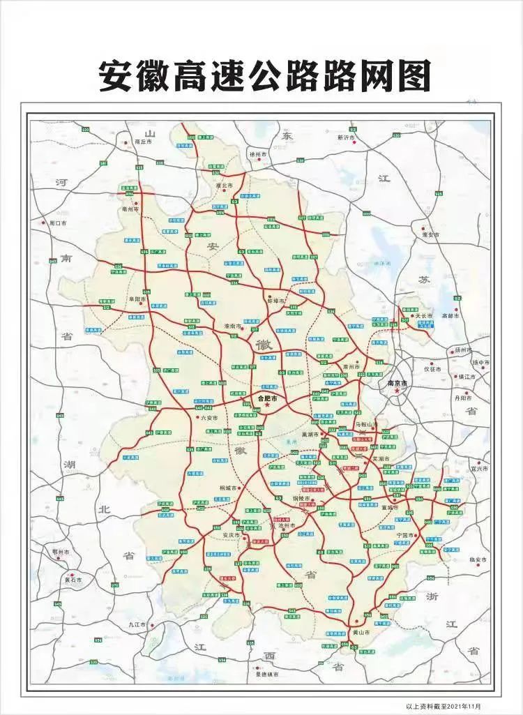 围绕加密省际高速公路网,我省将加快推进国家高速公路待贯通路段建设,完成G0321德上高速(合肥至枞阳、石台至祁门、祁门至皖赣界)、G4012溧阳至宁德高速黄山至千岛湖段、G4221上海至武汉高速无为至岳西段建设,确保到2025年安徽省境内国家高速公路实现全面贯通;加快推进皖苏、皖浙省际高速公路建设,建成来安至六合、宁国至安吉、和县至南京、徐州至蚌埠、五河至泗洪、明光至盱眙等高速公路,实现与沪苏浙地区全面高效对接;加强联通中西部的省际高速公路建设,实施阜阳至淮滨、合周高速、宣商高速、太湖至蕲春等高速公路建设;加快推进合杭高速、高淳至郎溪至长兴、天堂寨支线等省际高速公路项目前期工作,力争早日开工建设。