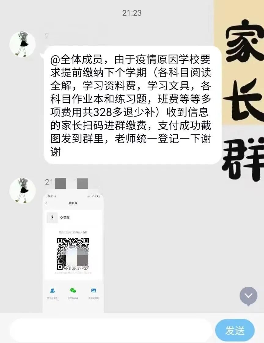 有的骗子还会一次混进多个账号,用其他账号冒充个别不活跃的家长,在“假老师”发出收款信息后回复“已转”“已支付”等消息混淆视听。