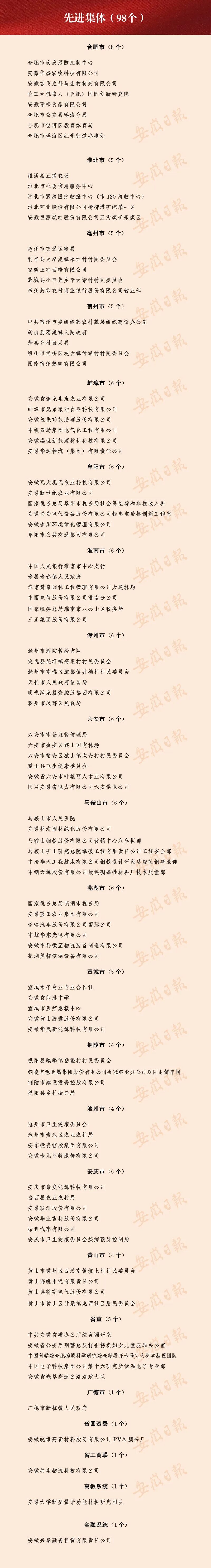 “安徽省先进集体”称号。