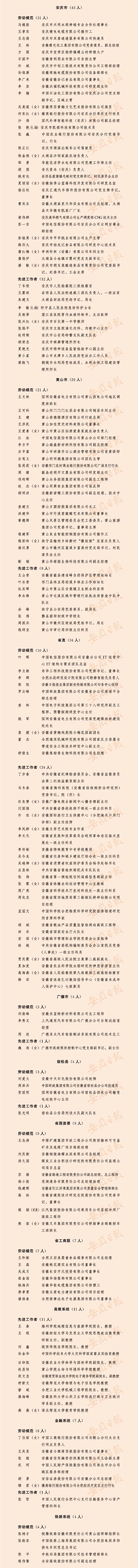 2022年安徽省劳动模范、先进工作者和先进集体名单