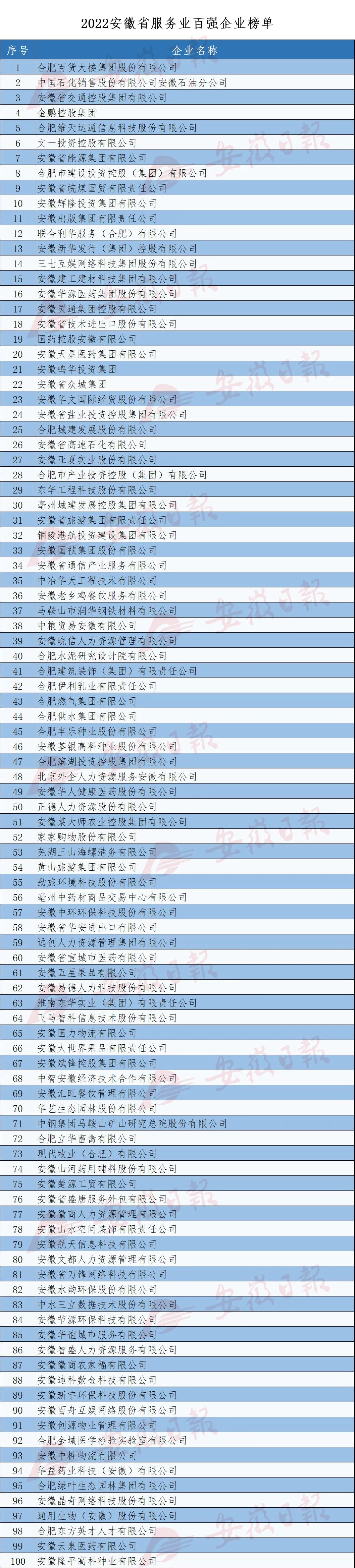 12月12日,安徽省企业联合会、省企业家联合会连续第18次发布“2022安徽百强企业”“2022安徽制造业百强企业”“2022安徽服务业百强企业”榜单。