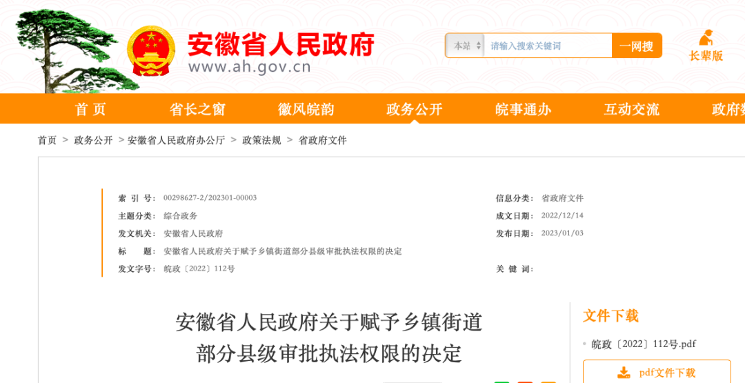 安徽省赋予乡镇街道部分县级审批执法权限指导目录