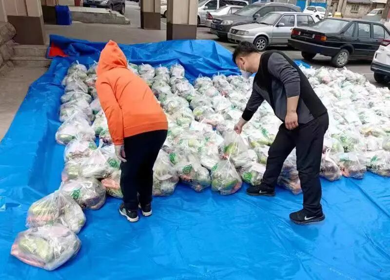 4月23日下午,国字菜篮子农业发展有限公司接到增援苏家屯区抗疫保供紧急任务。公司马上启动紧急配送流程。从各大供应商迅速调运蔬菜,并召集员工80多人,从下午3时开始,在公司临时搭建分拣线,对陆续到货的食材进行分类存放。蔬菜包里要求有8样蔬菜,每份的重量都是14斤,所以要求每包蔬菜都要进行称重,然后装袋。80多名工作人员,从23日17时开始分拣、称重、装袋,一直干到24日7时,经过14个小时的连续奋战,终于完成1万份“暖心蔬菜包”的备货工作。