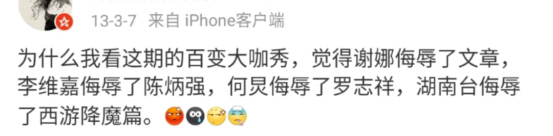 其实在2012至2014节目集中播出期间,质疑节目侮辱明星、侮辱名作、侮辱历史人物的声音非常常见。