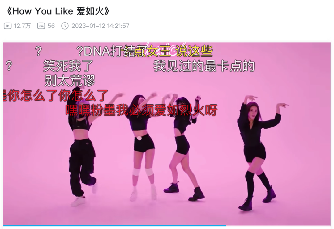 ,让《爱如火》搭配上各类韩团、欧美舞蹈视频。其中,BLACKPINK的《How You Like That》完美卡点,变成《How You like 爱如火》,或是搭配Doja Cat、Taylor Swift等欧美巨星以及伏地魔、魔仙堡等B站鬼畜常客为《爱如火》助阵。《原神》、《第五人格》《和平精英》等游戏同样成为素材对象。