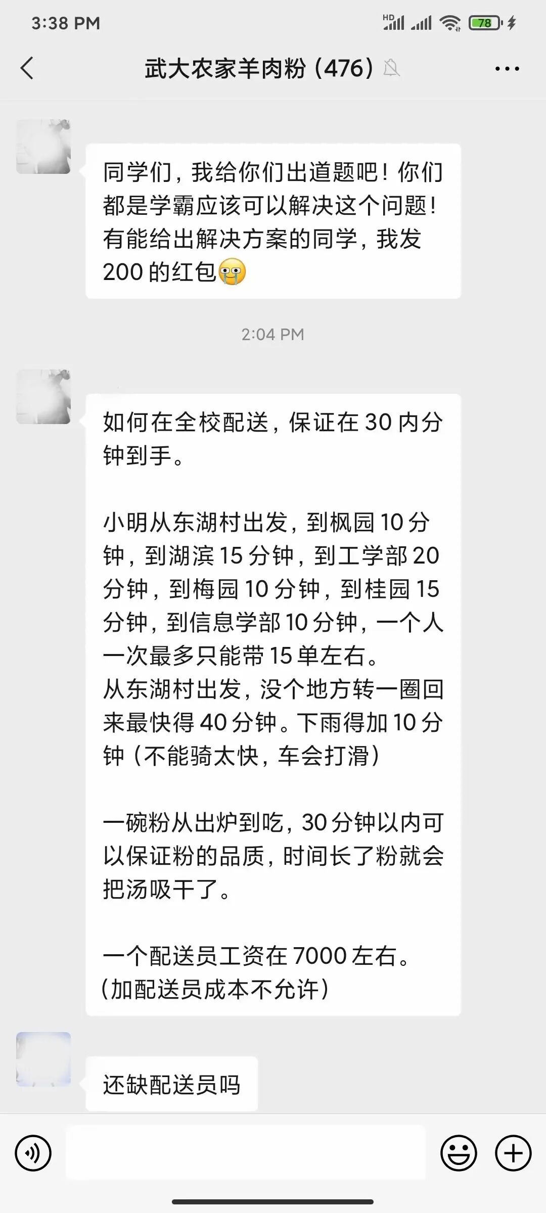 这看似只是巧妙借用外在人才资源的商业手段,请群里学霸算最短耗时路径和分配方案的偶然。但我们发现了其背后隐藏的底层逻辑——店家通过对双一流院校消费群体学术能力资源的发掘与利用,实现对物流配送的赋能